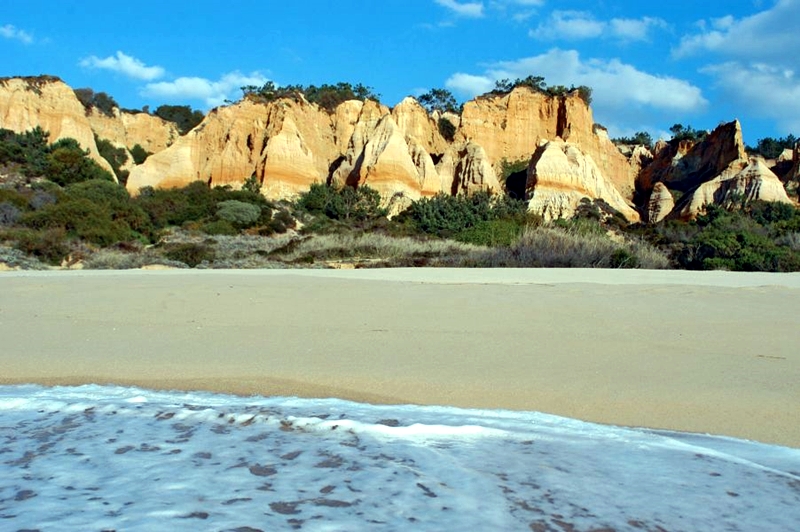 Erguendo-se abruptamente em desnível da ordem dos 70 m, constitui espetacular pano de fundo a toda a vizinha linha de praias.